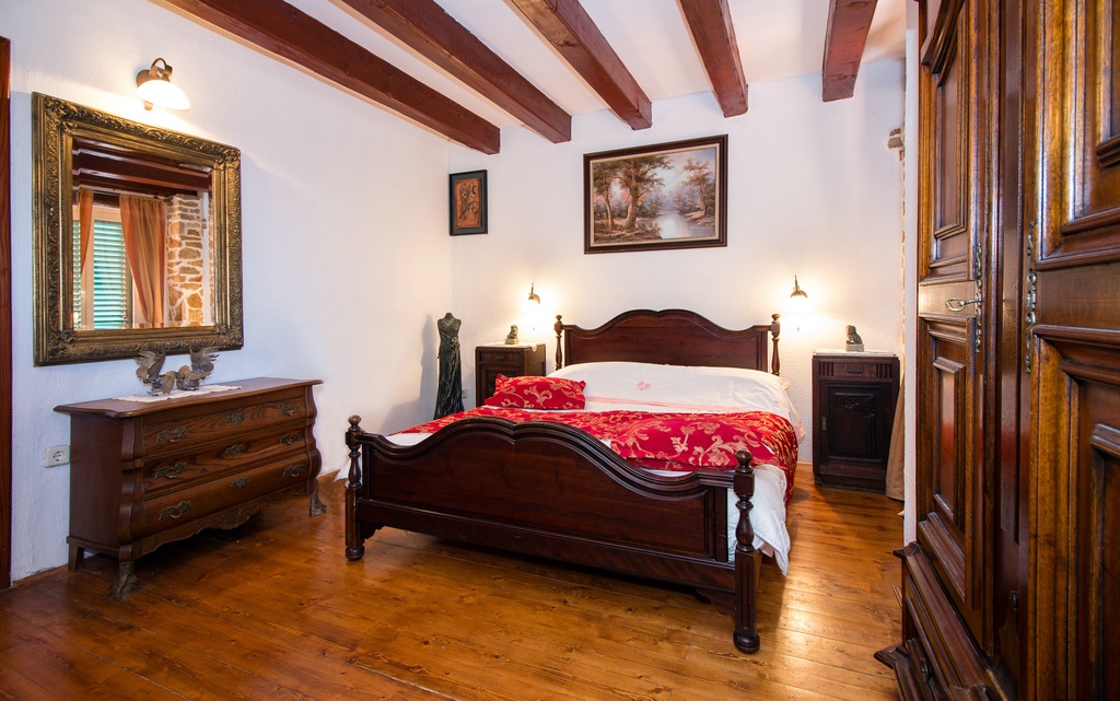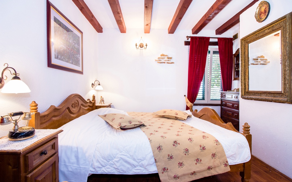 Self catering villa with a pool. Set in stunning countryside in the hinterland of Makarska and Split, 18km (10 miles) from some of the best beaches. The villa is located in a very quiet village Grabovac, where you can have an absolute peaceful & relaxing holiday with everything being only a 15-20 minutes drive. Villa Olka is surrounded by mountains and has fantastic sunsets. Villa Olka accommodates up to 12 guests. 6 en-suite rooms with queen size beds, each room has TV and phone. Guest cottage with en-suite room on the first floor while the ground floor has a top-notch original Dalmatian tavern. Terrace with barbecue facilities accommodates up to 25 people and is also suitable for outdoor meetings. Entertainment area in the attic comes with own bar, sound system and poker table. Possibilities to make own wine – harvesting and preparation, as well as tasting. Privacy, ambiance, mild temperature during summer, easy accessibility from the highway.